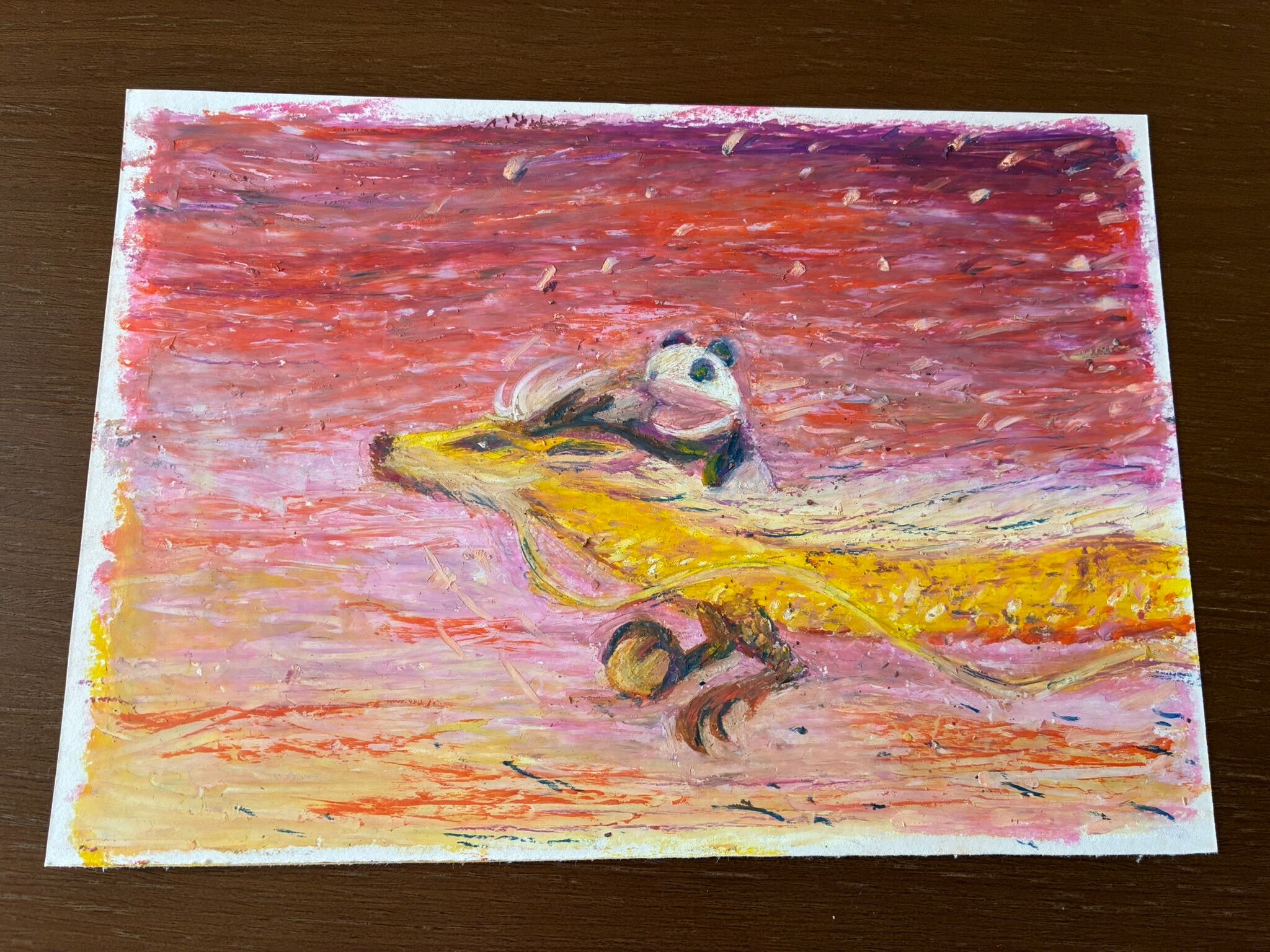 タイトル 金の竜の背に乗るパンダ